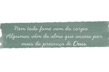 O jejum é o lugar onde o coração se alinha com a vontade de Deus e a alma aprende a descansar na presença d´Ele.